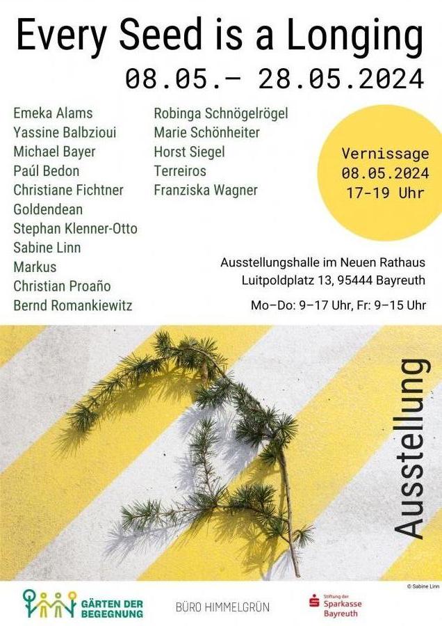 In cooperation with Büro Himmelgrün and former colleagues from Iwalewahaus of the University of Bayreuth we will be showing the group exhibition 'Every Seed is a Longing' which is on view at the Ausstellungshalle at the Neuen Rathaus Bayreuth from May 8 - 28, 2024.